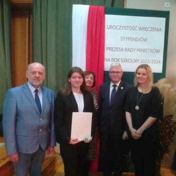 17 listopada odbyła się uroczystość wręczenia stypendiów Prezesa Rady Ministrów na rok szkolny 2023/2024. Weronika Dzwoniarska, uczennica naszego liceum miała zaszczyt otrzymać jedno z tych stypendiów, a w trakcie wydarzenia towarzyszyły Jej: mama oraz pani wicedyrektor Wioletta Adamczyk. Emocje i radość nie opuszczały uczestników w tej ważnej chwili. Jesteśmy niezmiernie dumni z osiągnięć Weroniki. Serdecznie gratulujemy.