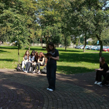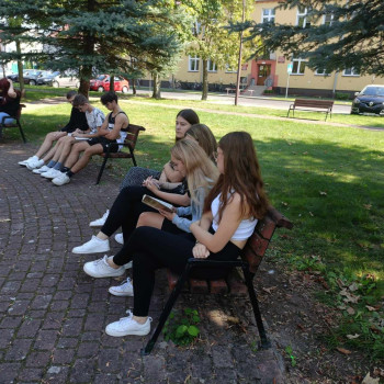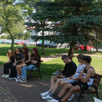 8 września 2023 r. w naszej szkole odbyło się Narodowe Czytanie. Para prezydencka wybrała książkę Elizy Orzeszkowej "Nad Niemnem". Korzystając z pięknej aury czytanie odbyło się w parku przed szkołą.