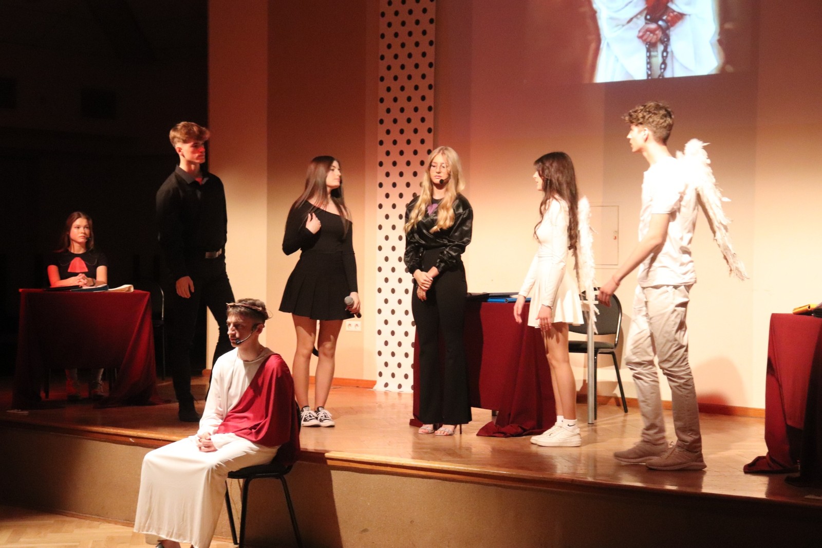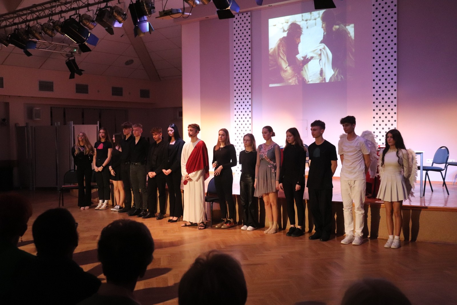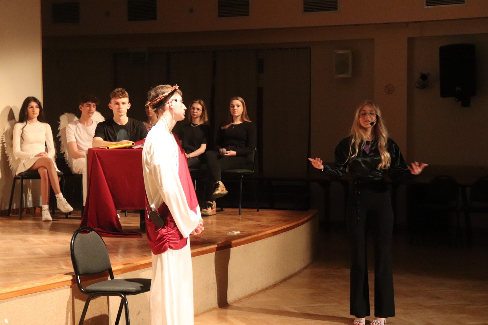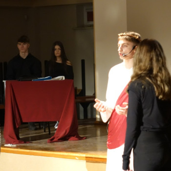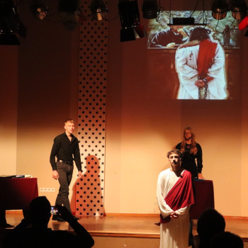 W piątek, 24 marca o godz. 18:00 w Miejsko-Gminnym Centrum Kultury w Kleczewie uczniowie Naszej szkoły wystawili „Pasję Miłości”. „Pasja Miłości” to „Pasja” nie tylko Jezusa, ale „Pasja” każdego z Nas. Przedstawienie „Pasja Miłości” z jednej strony miało skłonić widza do refleksji nad tajemnicą męki i śmierci Jezusa. A z drugiej strony miała przypomnieć, że celem naszego życia nie są pieniądze, bogactwo, posiadane stanowisko czy władza, lecz MIŁOŚĆ. Dlatego warto jest o tę Miłość dziś zawalczyć! Warto jest dla tej Miłości po prostu żyć. Uczniów przygotował ks. Rafał Budzyński, a wystąpili: