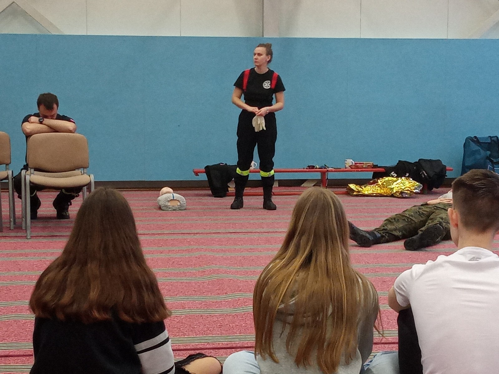 1 grudnia w naszej szkole odbyło się kolejne spotkanie ze strażakami OSP w Kleczewie. Tym razem tematem spotkania było postępowanie na miejscu wypadku. Spotkanie było podzielone na 4 grupy. Dla każdej grupy strażacy poświęcili 1,5 godziny, aby móc przedstawić i przypomnieć podstawowe zasady pomocy na miejscu wypadku oraz dać szansę na ćwiczenia z zakresu resuscytacji. Za spotkanie bardzo dziękujemy OSP Kleczew i czekamy na następne.
