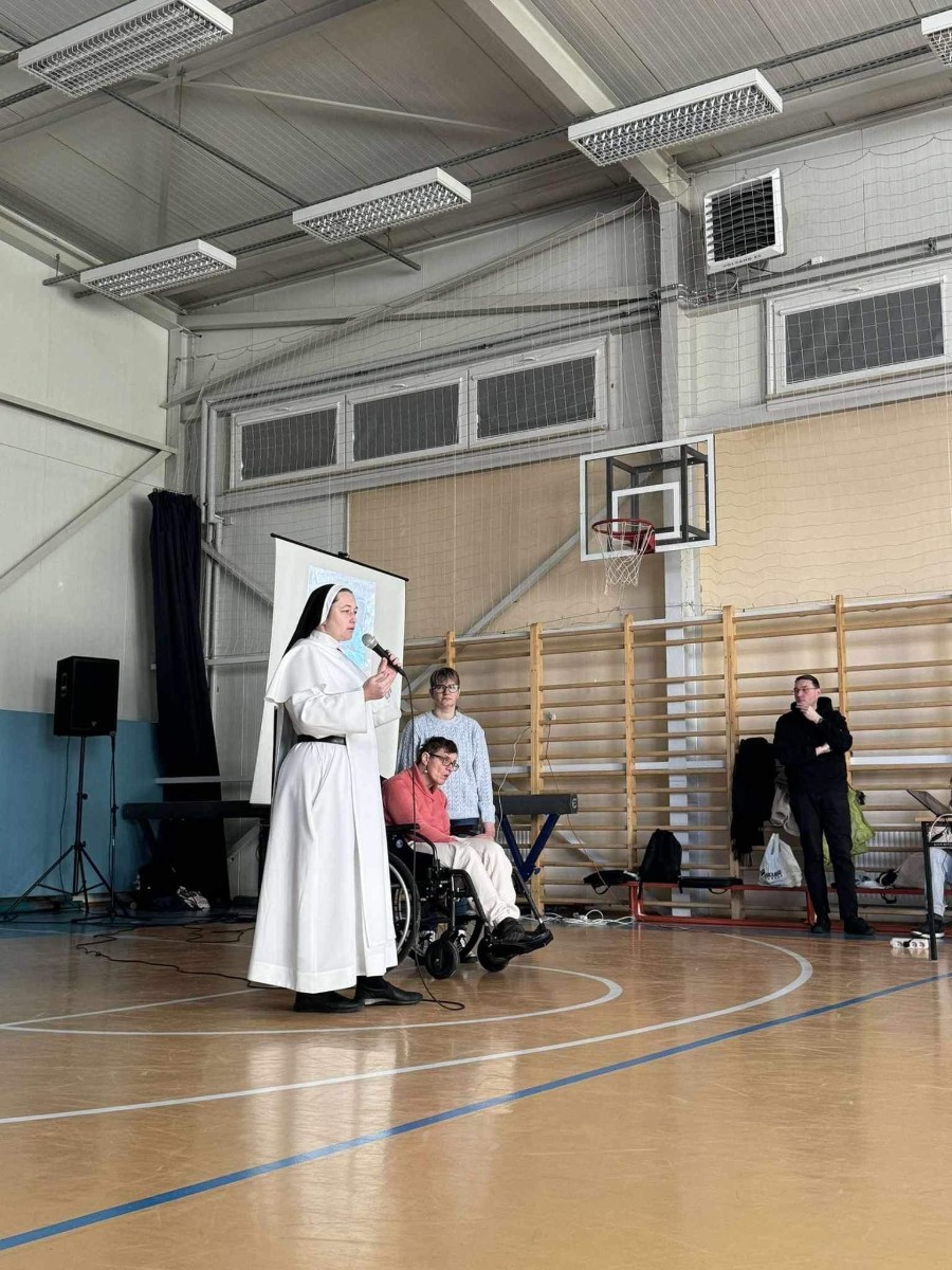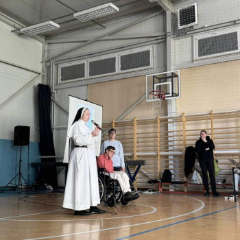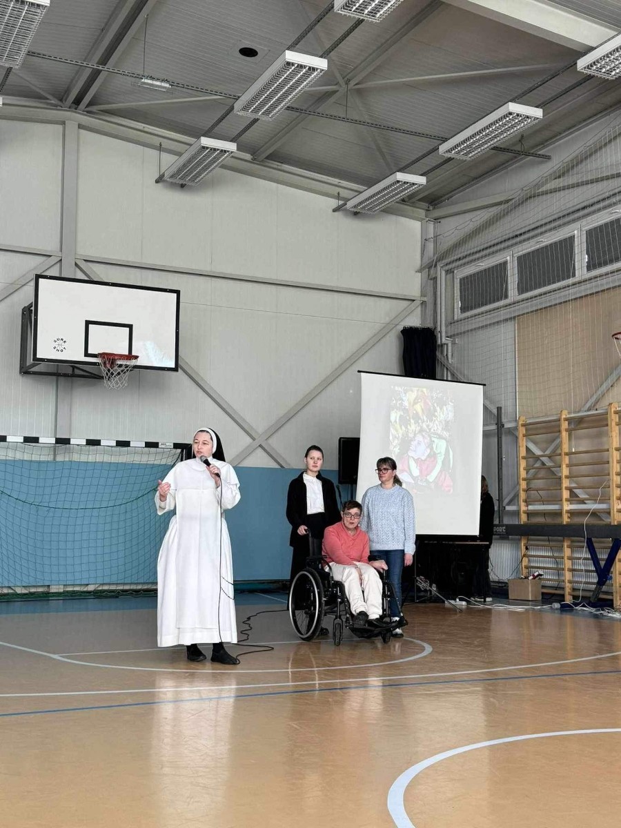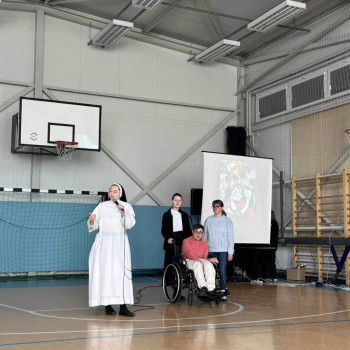 Podczas spotkania s. Vianney przybliżyła nam historię DPS w którym posługuje od czterech lat. Opowiedziała na czym polega praca z osobami niepełnosprawnymi oraz jak ważne jest stawanie w obronie każdego życia. Natomiast s. Katarzyna, która obecnie odbywa postulat opowiedziała historię swojego powołania.