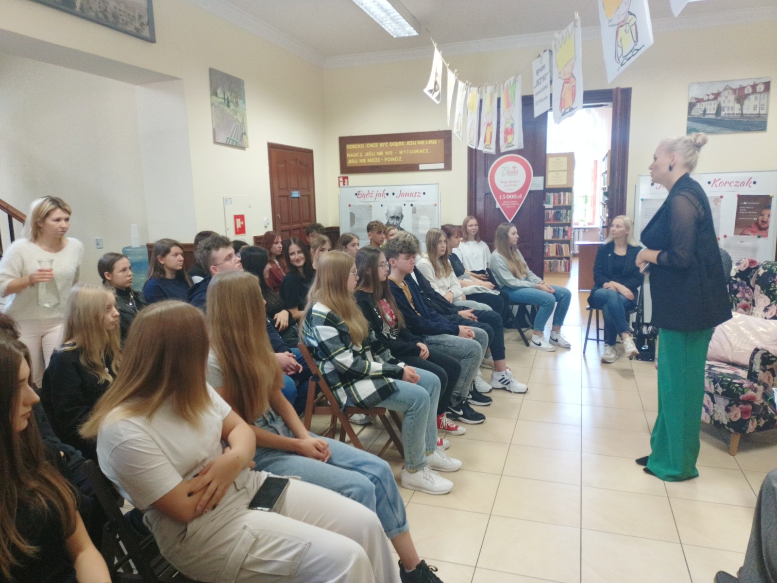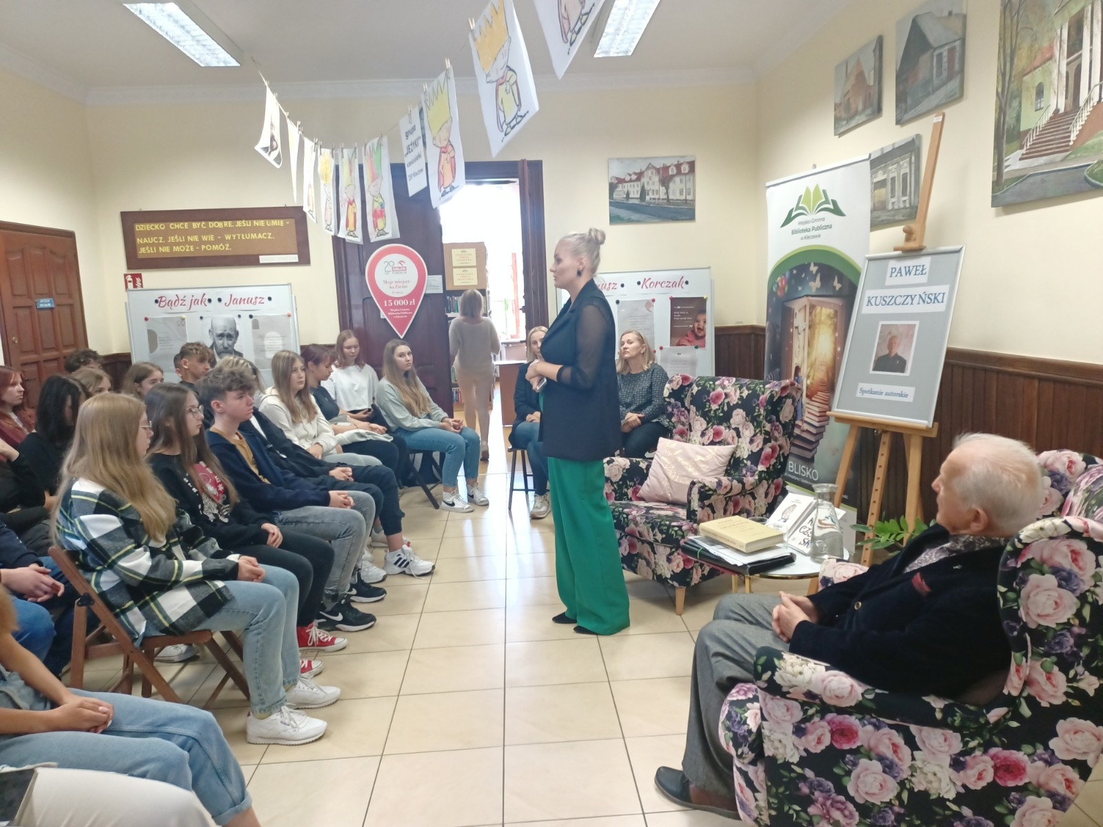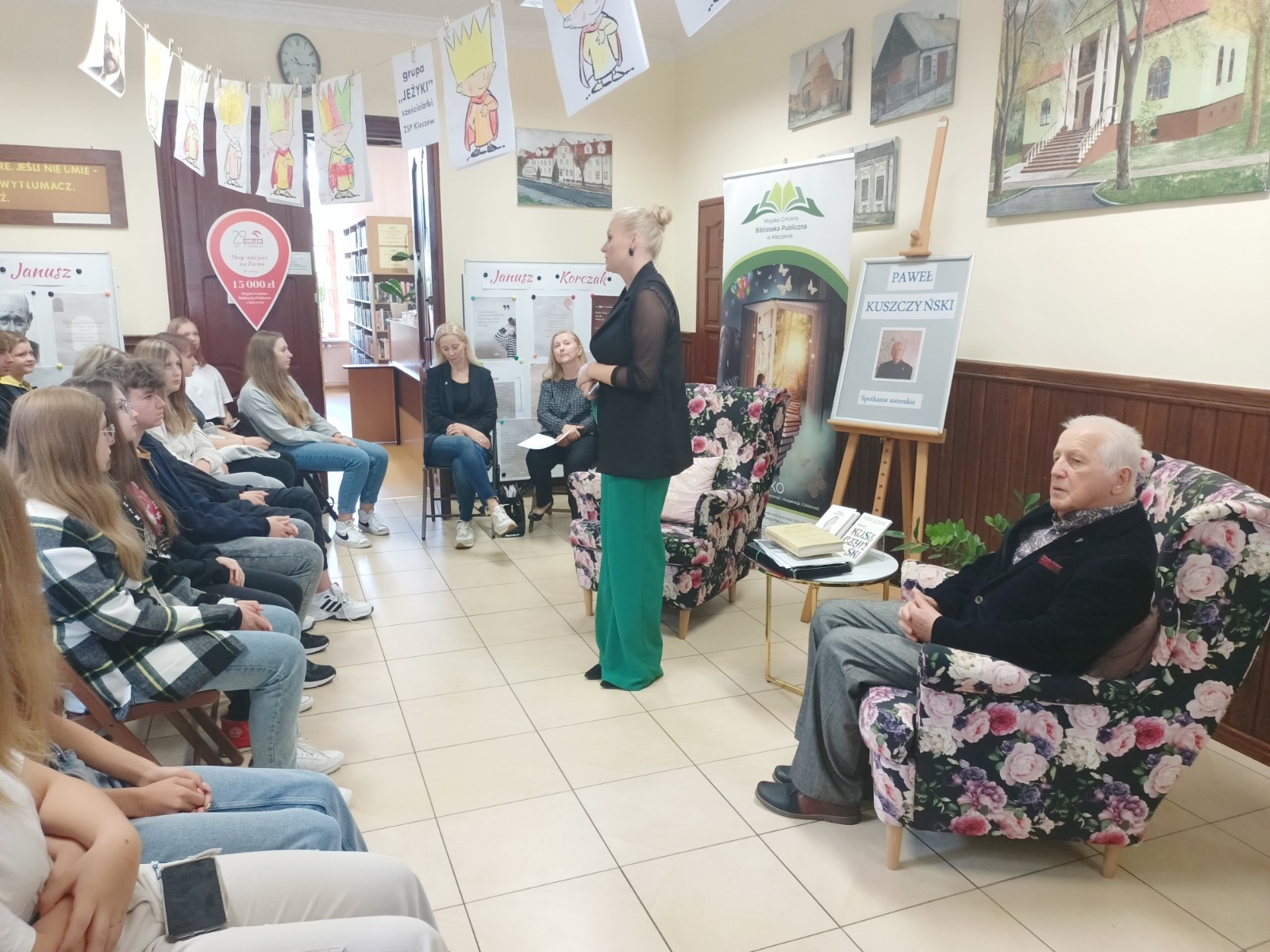 W piątkowe przedpołudnie 9 września uczniowie naszej szkoły wzięli udział w spotkaniu autorskim zorganizowanym przez Miejską- Gminną Bibliotekę Publiczną w Kleczewie. Gościem spotkania był poeta i krytyk literacki p. Paweł Kuszczyński. Autor zabrał młodzież w świat poezji i zapoznał ze swoją twórczością. Uczniowie wykazali duże zainteresowanie tematyką poruszaną przez p. Kuszczyńskiego, chętnie zadawali pytania co oznacza, że interesują się literaturą i potrafią prowadzić rozmowy na ten temat.