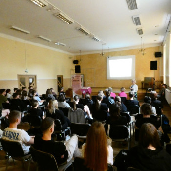 Podczas prelekcji zostały omówione symptomy choroby nowotworowej piersi, na co należy zwrócić uwagę, co nas powinno zaniepokoić w wyglądzie skóry, w jaki sposób należy prawidłowo wykonać samobadanie. Młodzież dowiedziała się również, gdzie należy zgłaszać się po pomoc w razie wykrycia guzka czy zmian skórnych.