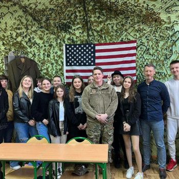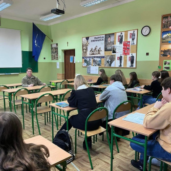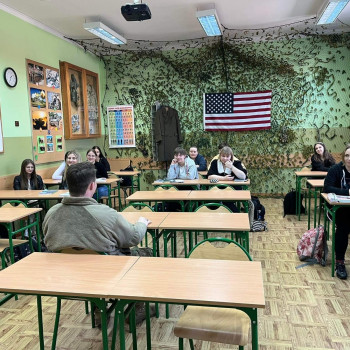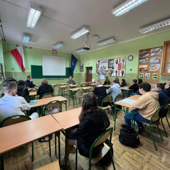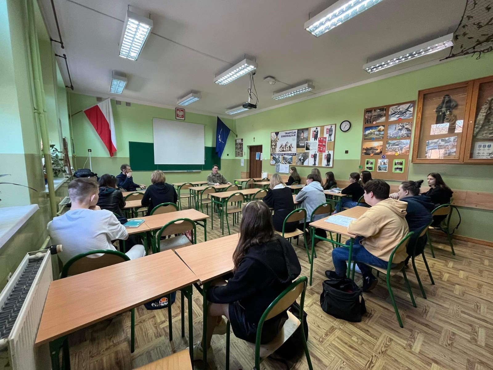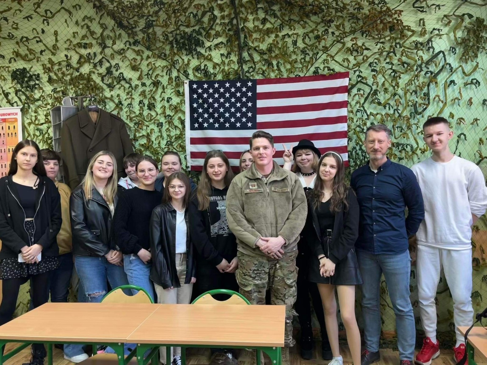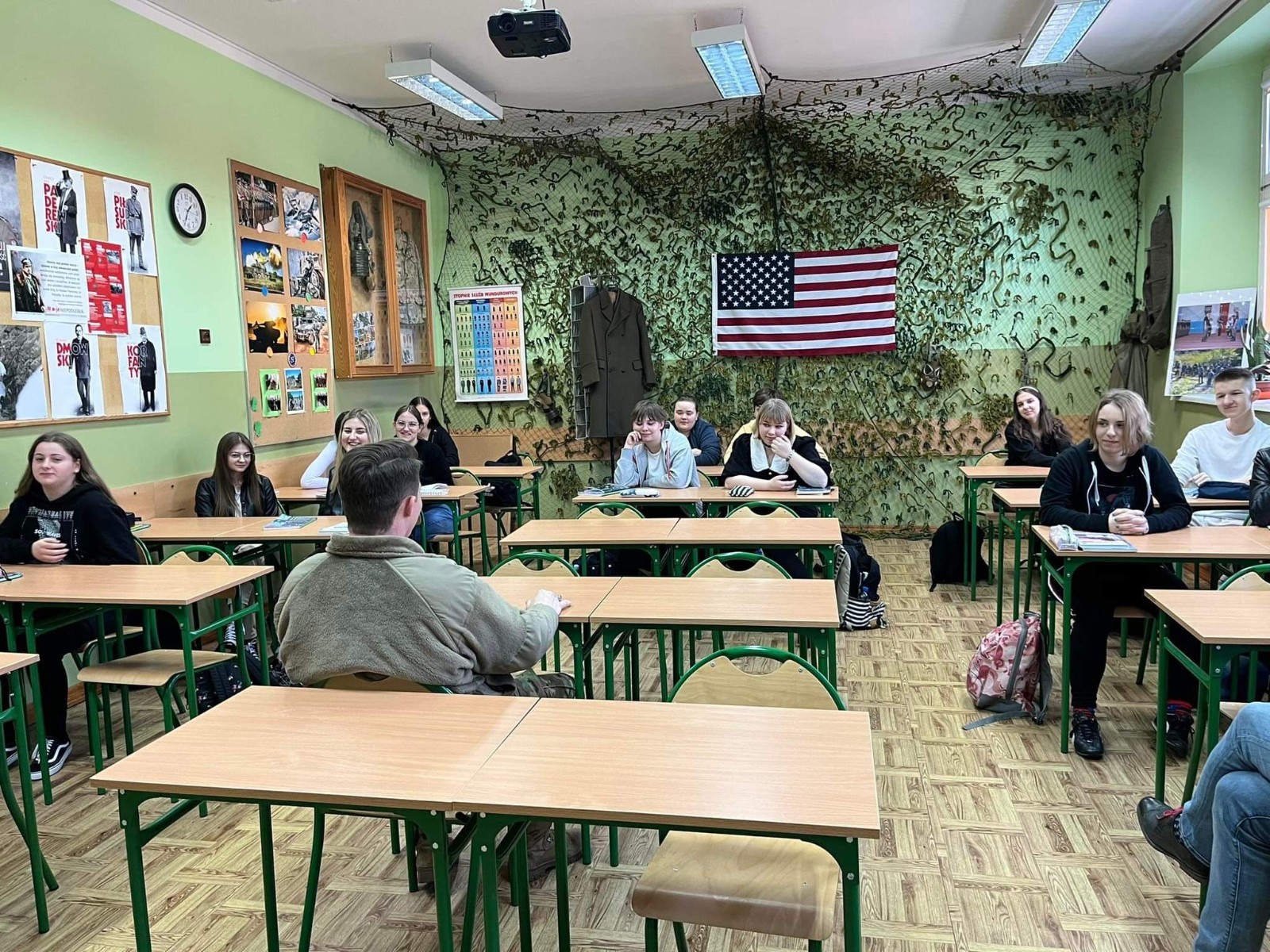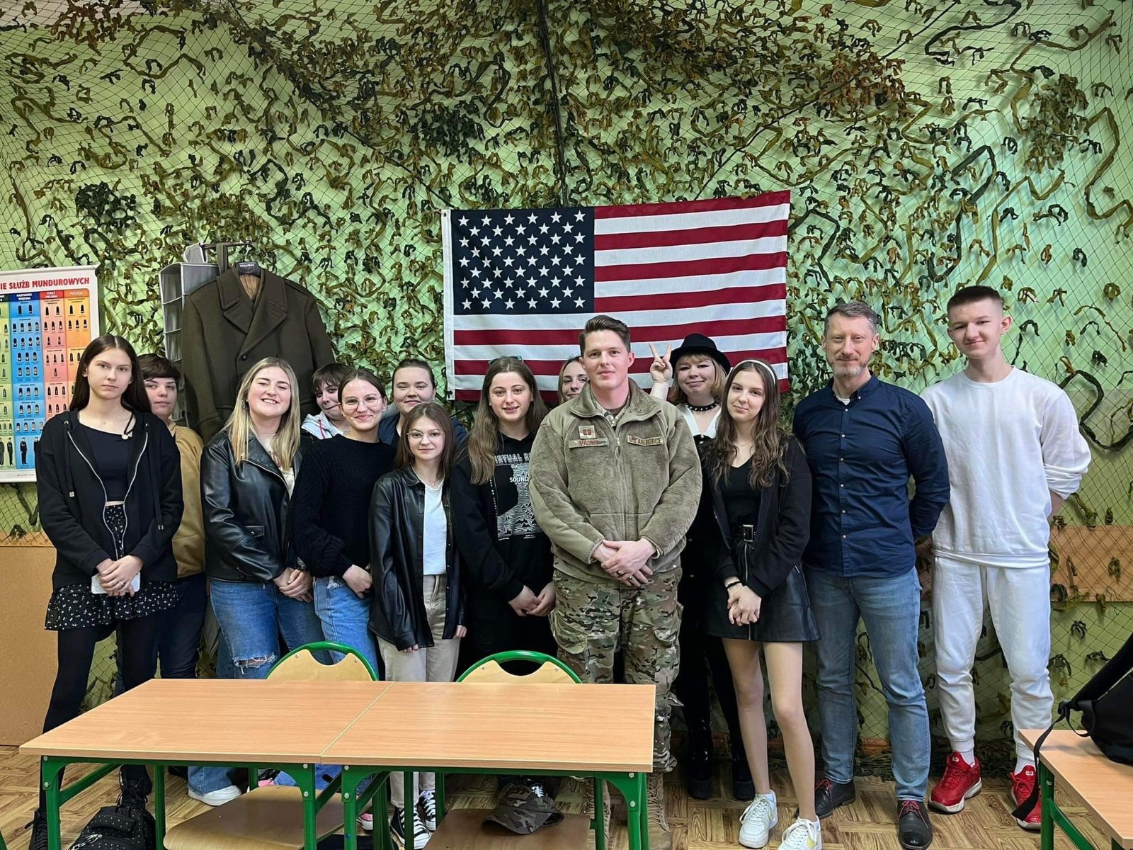W środę do naszego liceum przyjechał kapitan US Air Force - Dylan Mason!Kapitan, pracuje w bazie wojskowej w Powidzu, W przyjemnej atmosferze mogliśmy skorzystać z tej niesamowitej okazji, aby podpytać się o jego pracę, opinię dotyczącą przeżyć w Polsce, czy też dowiedzieć się różnych ciekawostek. Niemal wszystko w języku angielskim (kapitan nieźle radzi sobie z językiem polskim) Chwila prawdy dotycząca naszych English skills nadeszła! Całą serię spotkań z różnymi klasami zorganizował Dariusz Łukasiewicz- nauczyciel angielskiego i historii. P.S. mamy nadzieję, że było to pierwsze, ale nie ostatnie spotkanie. Dodajmy, że jest to kontynuacja naszych szkolnych kontaktów z żołnierzami z US Air Force zapoczątkowanych kilka lat temu, niestety przerwanych pandemią COVID-19, zatem wracamy do tradycji.