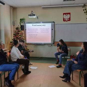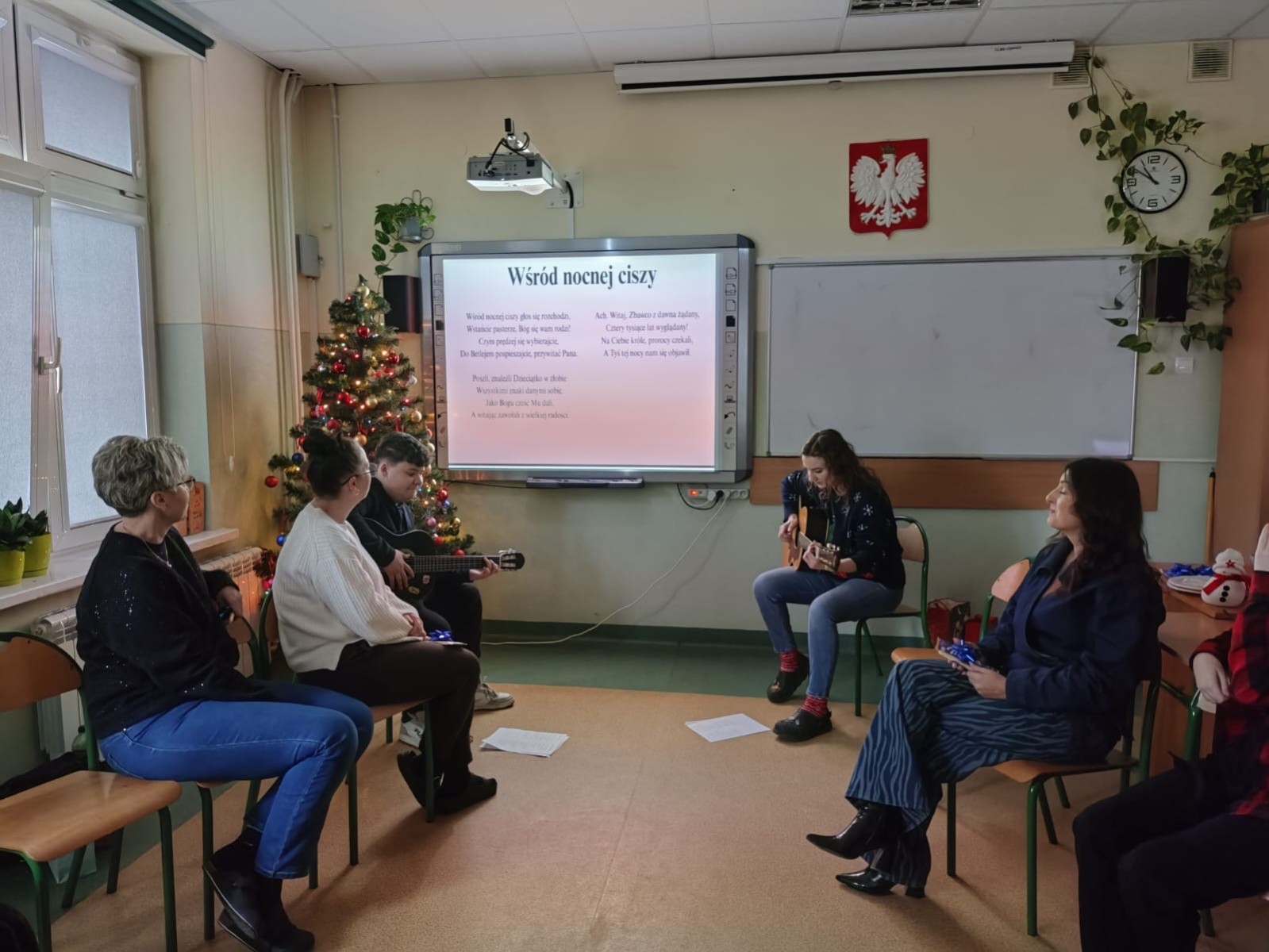 Tego dnia cała społeczność szkolna zjednoczyła się podczas wspólnego kolędowania, a w murach szkoły panowała prawdziwie świąteczna, serdeczna atmosfera. Składaliśmy sobie życzenia, dzieliliśmy się dobrym słowem i uśmiechem, często przełamując nieśmiałość i codzienne bariery. Był to czas bliskości, otwartości i wzajemnej życzliwości, który na długo pozostanie w naszej pamięci. ✨