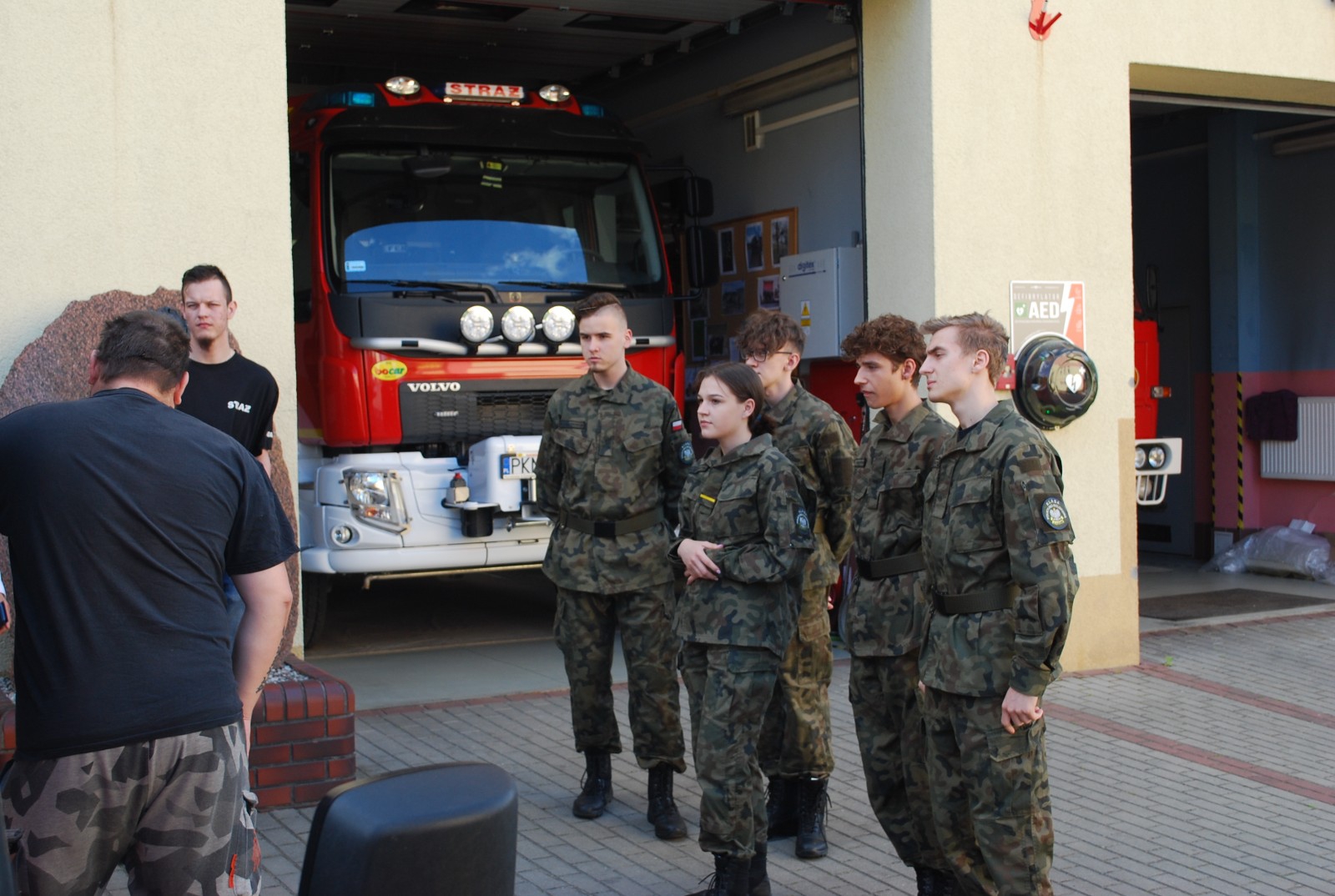Dzięki uprzejmości Prezesa Ochotniczej Straży Pożarnej w Kleczewie uczniowie klasy 2B uczestniczyli w zajęciach w jednostce straży pożarnej. Uzyskali odpowiedzi na pytania; jak prawidłowo wzywać straż, jak funkcjonuje krajowy system ratownictwa gaśniczego. Zapoznani zostali jak strażacy są przygotowani do udzielania pierwszej pomocy przedmedycznej. Poznali także wyposażenie medyczne i gaśnicze strażaków.
