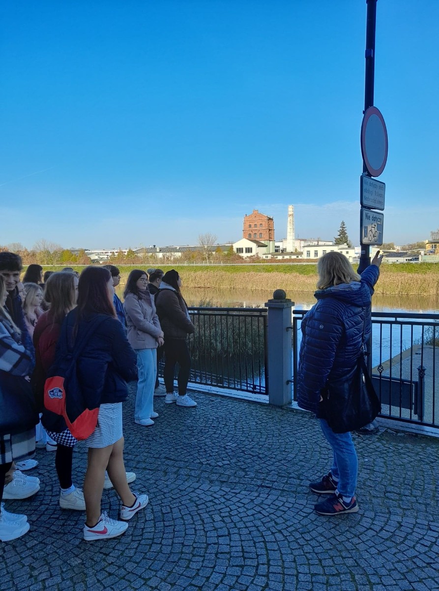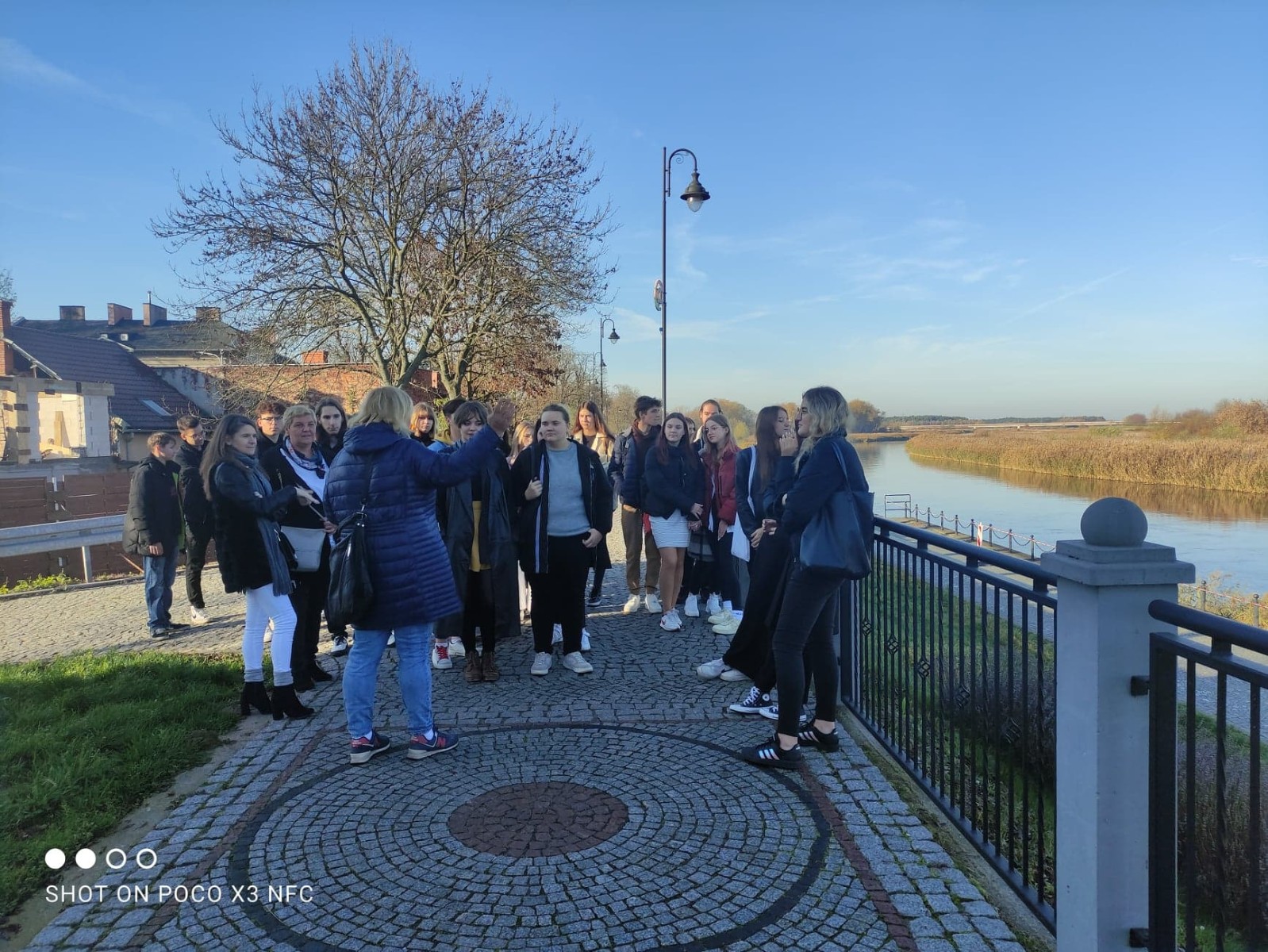 Następnie spacerem udaliśmy się wzdłuż bulwarów. Uczniowie mieli również okazję zobaczyć słup Milowy, Kościół św. Bartłomieja, dworek Zofii Urbanowskiej. Historie tych miejsc przybliżyła nam Pani Elwira Jeglińska.