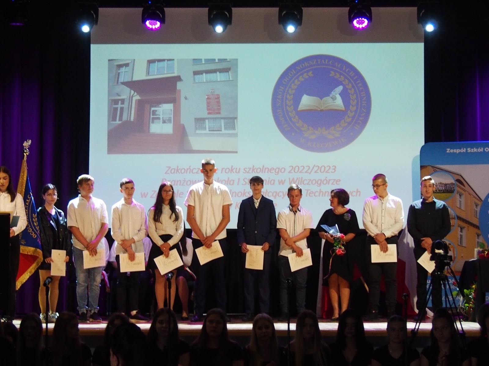 23 czerwca w Gminnym Ośrodku Kultury odbyła się uroczystość zakończenia roku szkolnego 2022/2023 i ukończenia Branżowej Szkole I stopnia w Wilczogórze . Uhonorowano tych uczniów, którzy dzięki swojej wytrwałej pracy i nienagannej postawie uzyskali bardzo dobre wyniki w nauce, ze średnią 4,75.