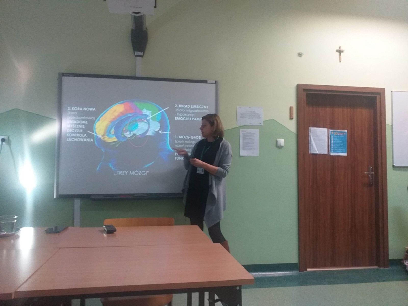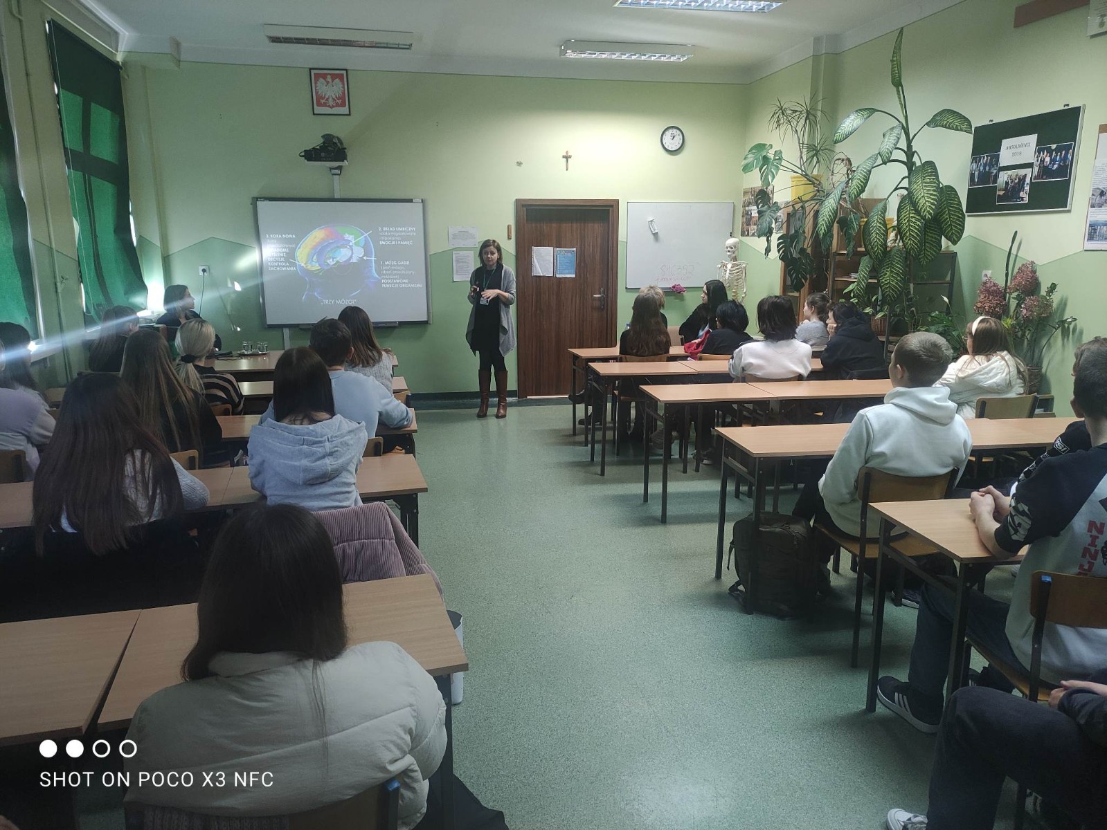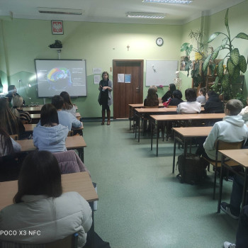 W dniu 28.02.23 r. uczniowie klas maturalnych (4AP oraz 4 BPO) wzięli udział w wykładzie prowadzonym przez p. dr Łobodę- Świątczak - wykładowcę Akademii Nauk Stosowanych w Koninie. Temat wykładu "Ach, żeby mi się chciało jak mi się nie chce". Uczniowie dowiedzieli się wielu ciekawych rzeczy na temat pracy naszego mózgu oraz poznali różne sposoby motywowania do pracy lub nauki (a przecież matura tuż, tuż