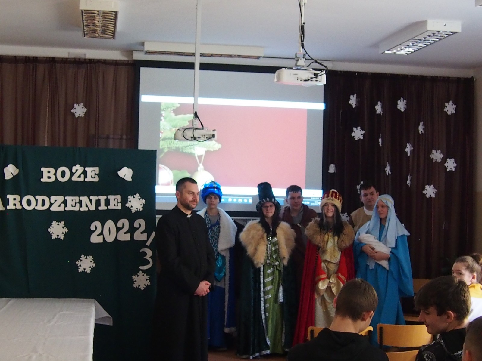 22 grudnia 2022 roku w BS I Stopnia uczestniczyliśmy w Jasełkach przygotowanych przez Ks. Mariusza Orlikowskiego i społeczność szkolną . Uczniowie odgrywali role postaci towarzyszących Narodzinom Dzieciątka. W świątecznej atmosferze i scenerii wkroczyliśmy w czas Bożego Narodzenia. Jasełkom towarzyszył wspólny śpiew kolęd. Przedstawienie zostało powtórzone 2 stycznia 2023 roku dla uczniów, którzy nie mogli uczestniczyć w tej uroczystości przed świętami.