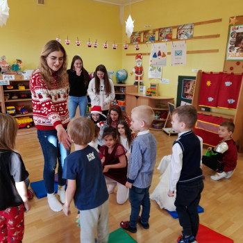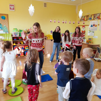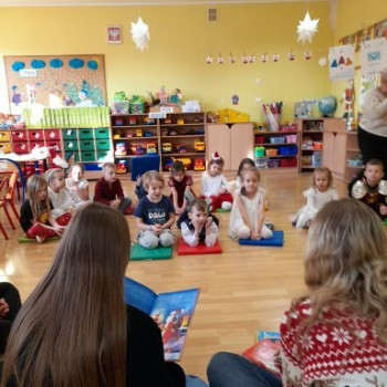 14 grudnia byliśmy z wizytą w kleczewskim przedszkolu. W ramach akcji „Cała Polska czyta dzieciom” uczennice klasy III a Julia, Alicja, Martyna, Justyna i Julia wraz z opiekunem - nauczycielem bibliotekarzem czytały dzieciom świąteczne bajki . Atmosfera była iście świąteczna, gdyż tego samego dnia grupa przedszkolaków u której zawitaliśmy wcześniej miała wigilijne spotkanie z rodzicami.