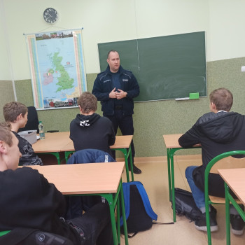 W miniony poniedziałek 7.11.2022r. odbyło się spotkanie uczniów klas pierwszych z dzielnicowym młodszym aspirantem p. Bartoszem Narożnym. Celem spotkania było uświadomienie młodzieży zagrożeń pojawiających się we współczesnym świecie oraz odpowiedzialności prawnej. Uczniowie mieli możliwość zadawania pytań na interesujące ich tematy.