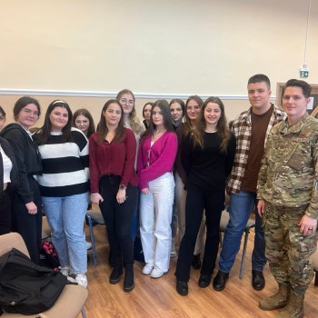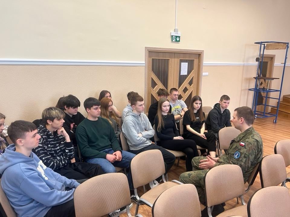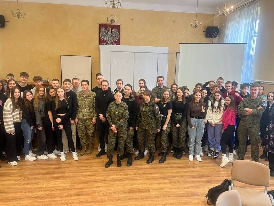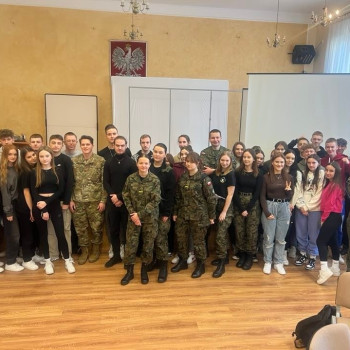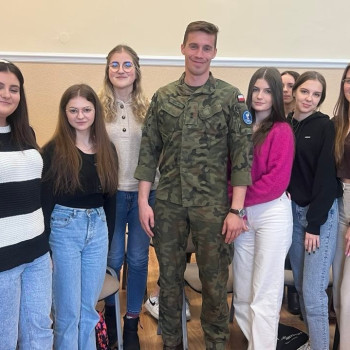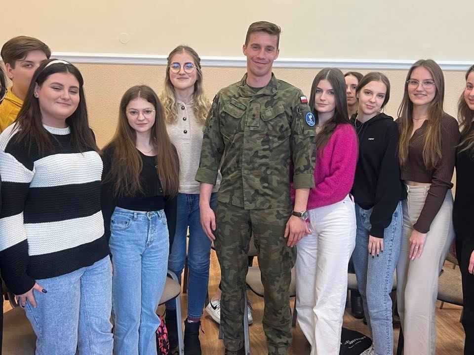 28 lutego br. uczniowie klas policyjno-wojskowych z naszej szkoły mieli okazję spotkać się z oficerami z 33 Bazy Lotnictwa Transportowego z Powidza. Naszymi gośćmi byli major Jacek Frąckowiak i porucznik Wiktor Roszak oraz kapitan Dylan Mason z US Air Force, który nawisem mówiąc, jest zaprzyjaźniony z naszą szkołą. Na wstępie żołnierze przedstawili się i opowiedzieli o swojej służbie w wojsku i o tym jak w ogóle do niej trafili. Następnie odbyły się spotkania w podgrupach, sprzyjało to bardziej bezpośredniej, otwartej rozmowie. Podział na grupy pomógł tez wielu przełamać strach przed wypowiadaniem się w języku angielskim. Spotkanie przebiegło w bardzo miłej i sympatycznej atmosferze. Oficerowie wyrazili chęć na kolejne spotkania. Z czego niewątpliwie skorzystamy. Umówiliśmy się też na odwiedziny 33 BLT w najbliższym możliwym terminie.