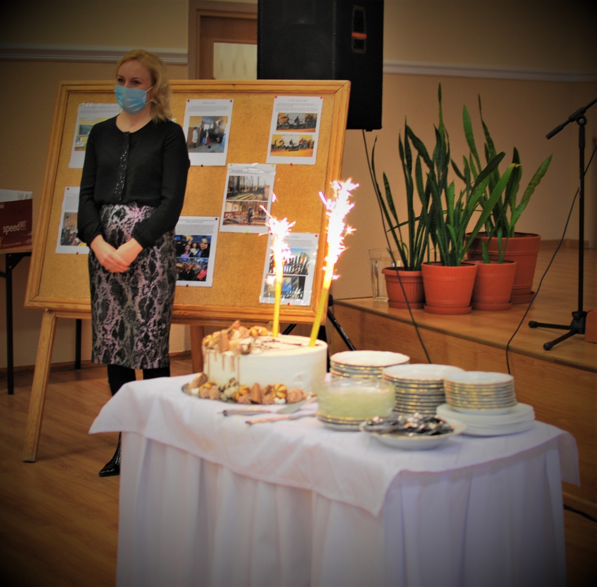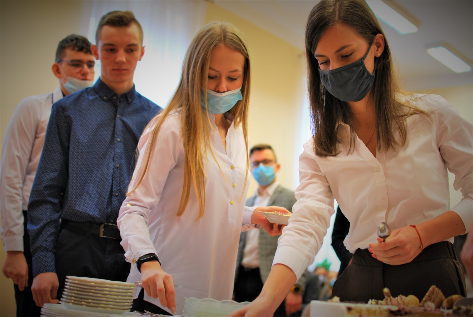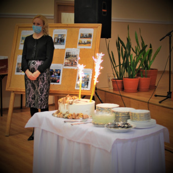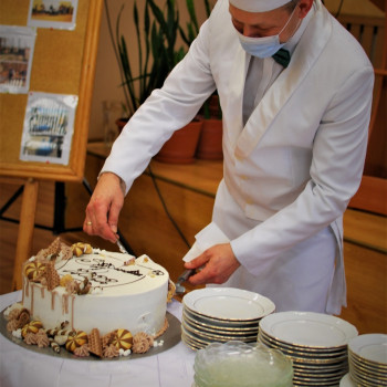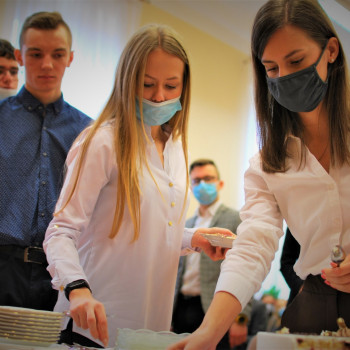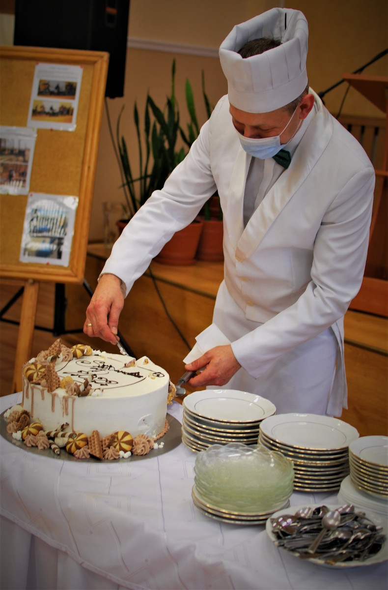 Po części oficjalnej spotkania Dyrektor ZSOT Pani Aneta Kalina Szczepaniak zaprosiła władze Starostwa oraz uczniów na tort przygotowany specjalnie na okoliczność wręczenia stypendiów.
