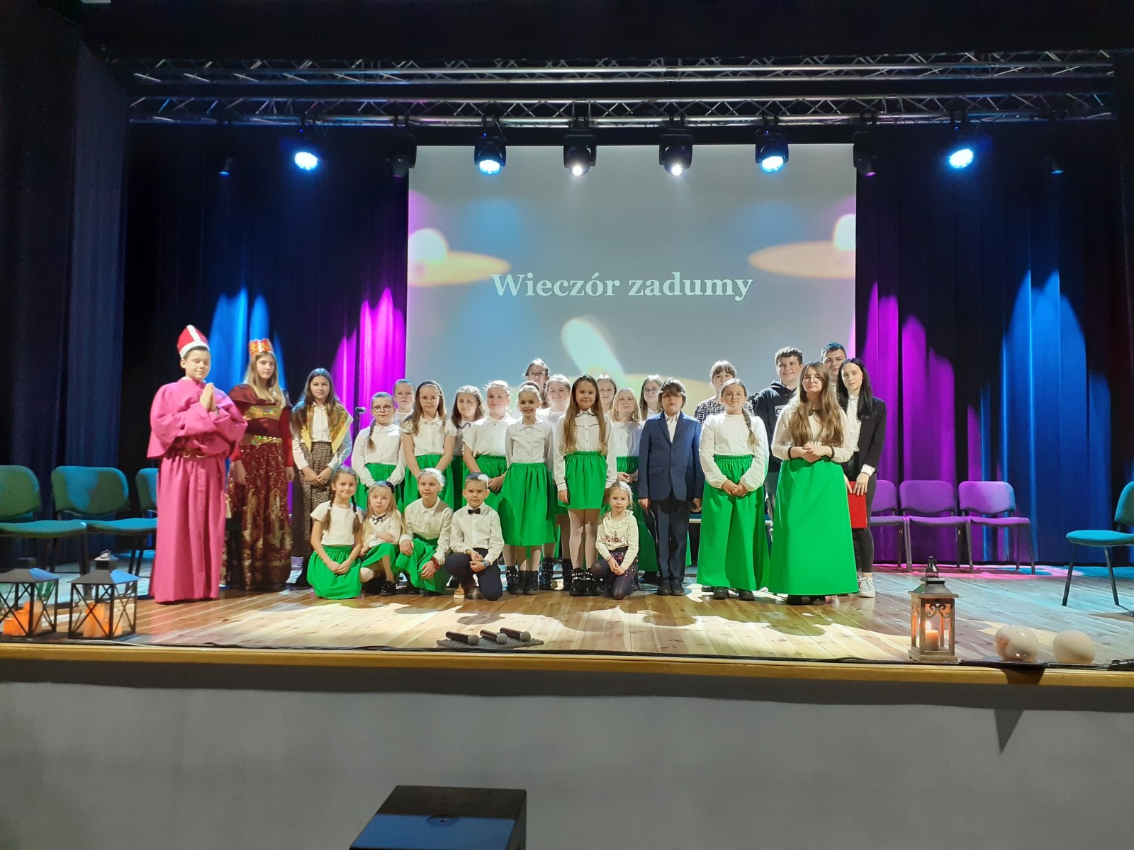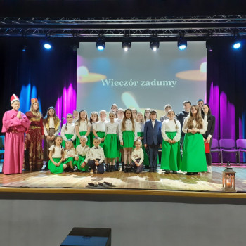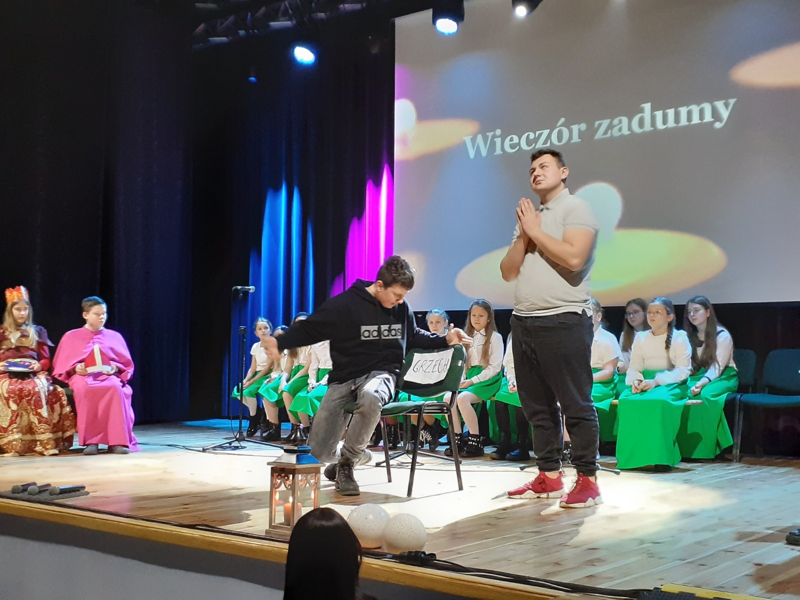 W niedzielę 3.12.2022r., w wilczyńskim Domu Kultury odbył się Wieczór Zadumy. Uczniowie Branżowej Szkoły I stopnia w Wilczogórze wraz z uczniami ze Szkoły Podstawowej im. Jana Pawła II poprzez recytacje wierszy, pantonimę i piosenki wprowadzili oglądających w nastrój Adwentu, który jest czasem oczekiwania na przyjście Pana?. Niektóre stroje zostały uszyte przez Panią krawcową z naszej szkoły. Wszystkim zaangażowanym serdecznie dziękujemy?